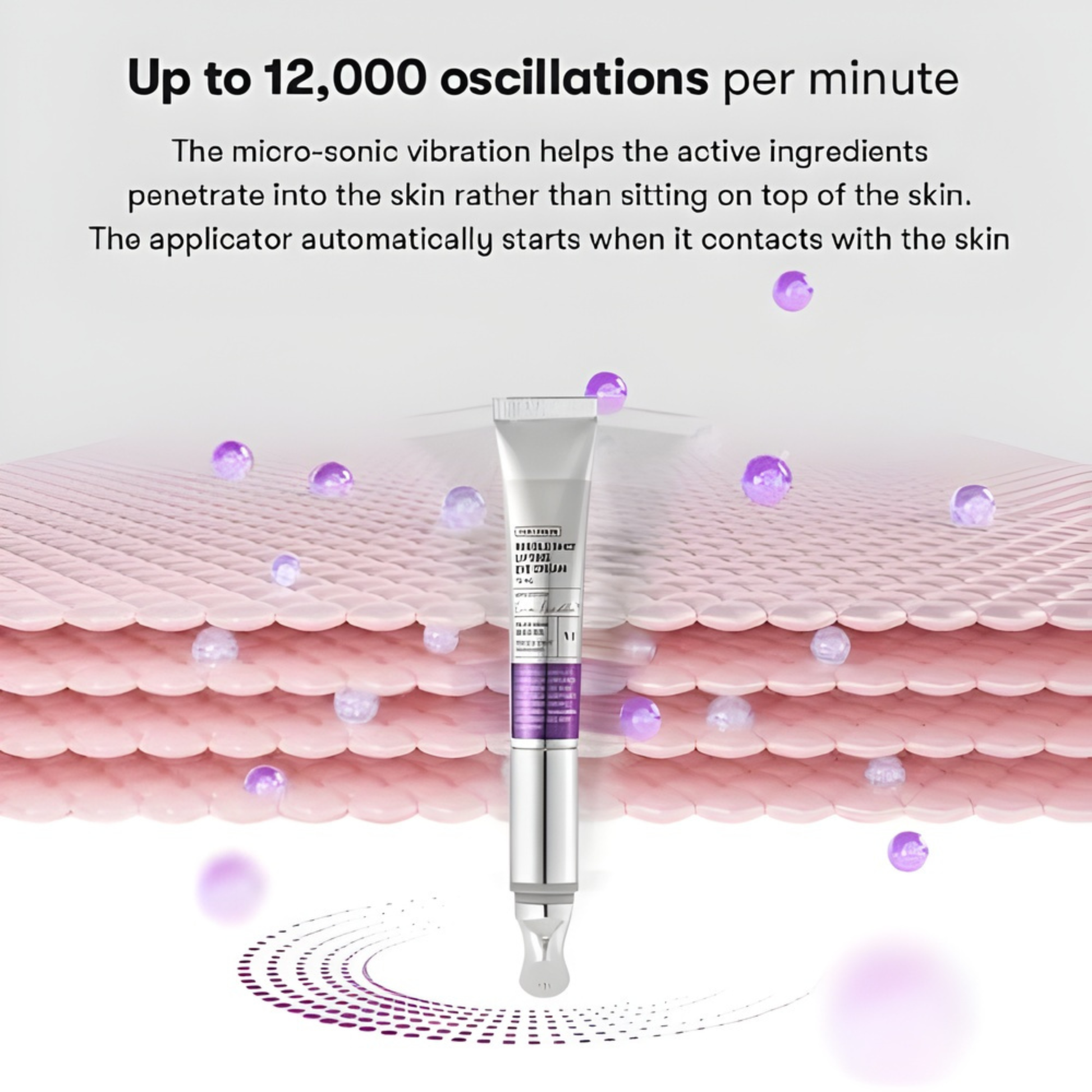 2. Hold the vibrating tip in your hand and press it on the face to start the device automatically. Gently massage the cream into the skin in a circling motion. Let it absorb slowly.
